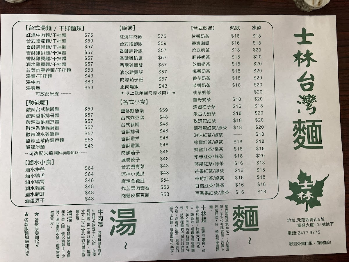 Welcome to Shilin Taiwan Shop, a hidden gem located in the bustling heart of Yuen Long, Hong Kong. Renowned for its authentic Taiwanese cuisine, this eatery specializes in braised beef noodles, often regarded as a national dish of Taiwan. The chef-owner, with a prestigious background having served global leaders like President Bush and Prime Minister Thatcher, ensures a remarkable dining experience.